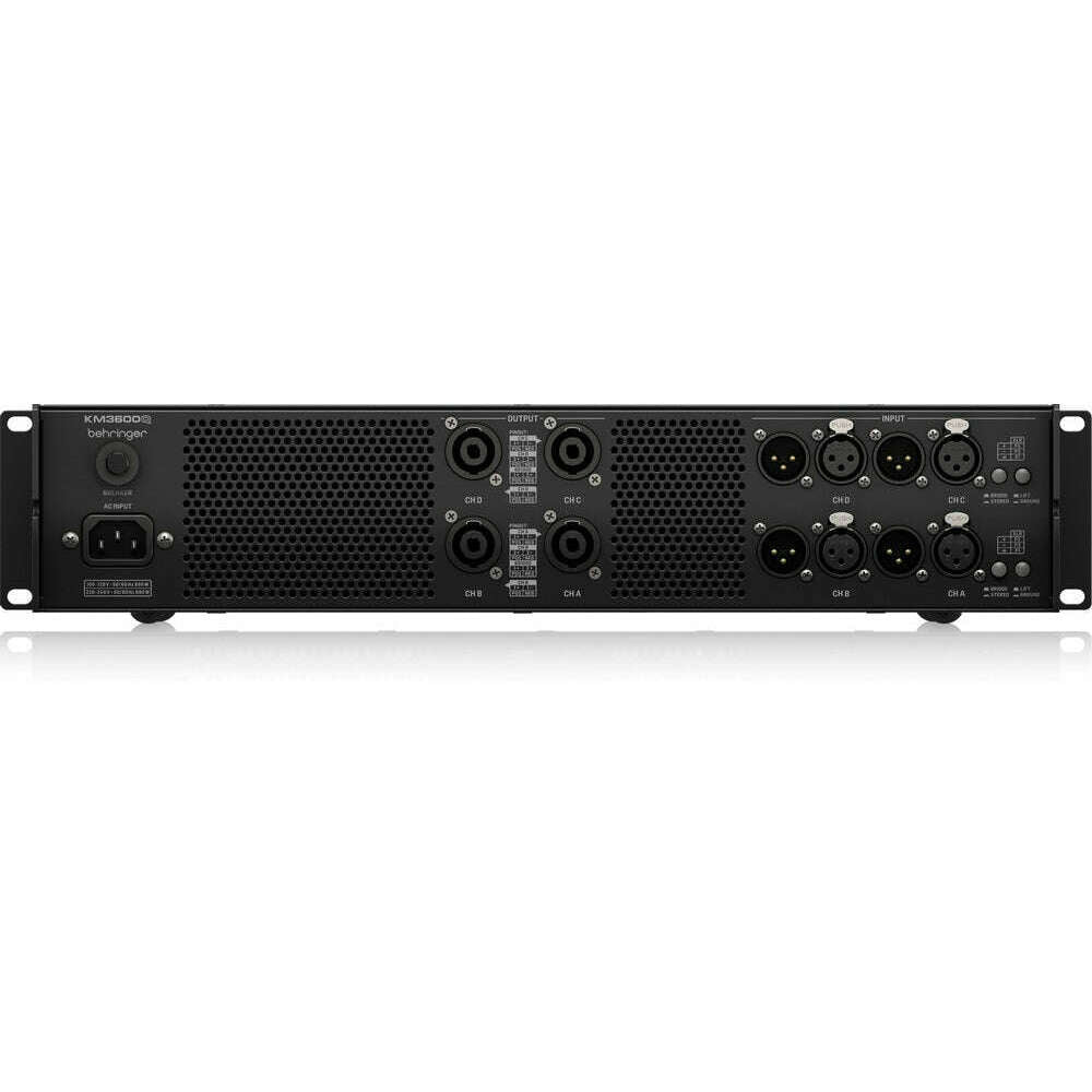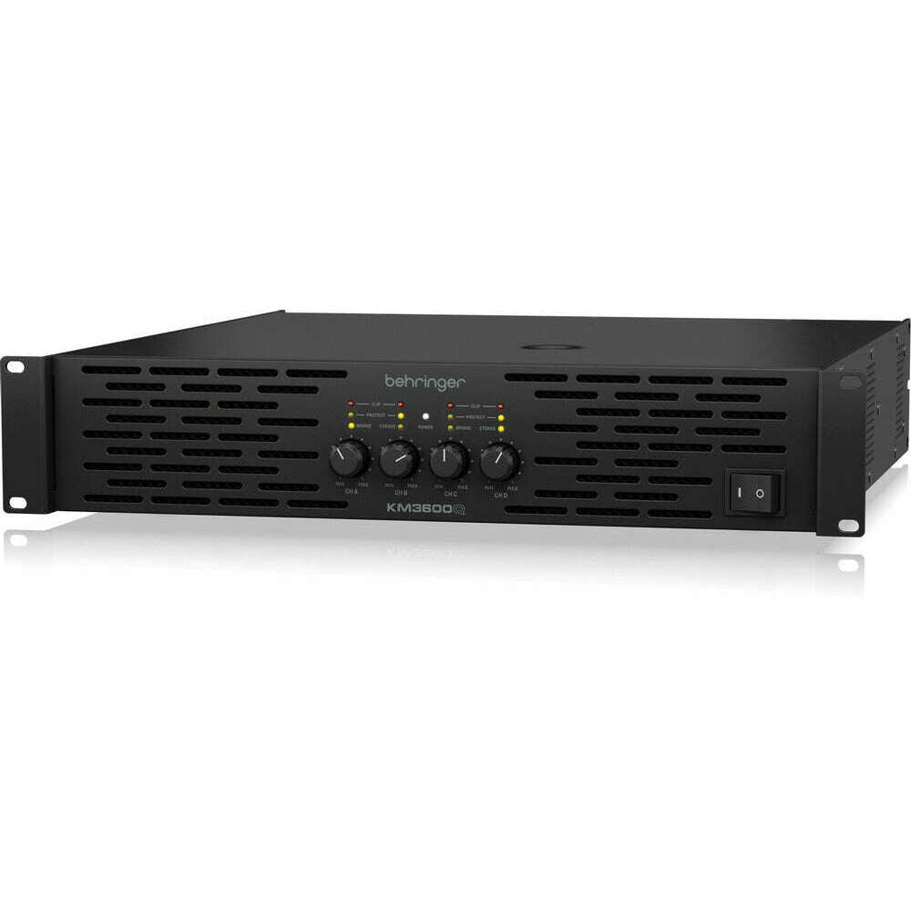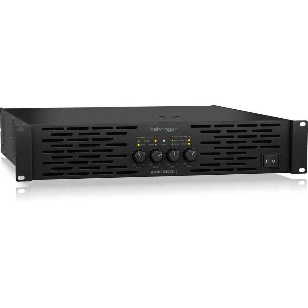 The Behringer KM3600Q is a professional 4‑channel power amplifier delivering an impressive 3600 watts of audio power. Designed for both touring and installation environments, it uses Behringer’s ATR (Accelerated Transient Response) technology to reproduce every transient with exceptional clarity and punch.